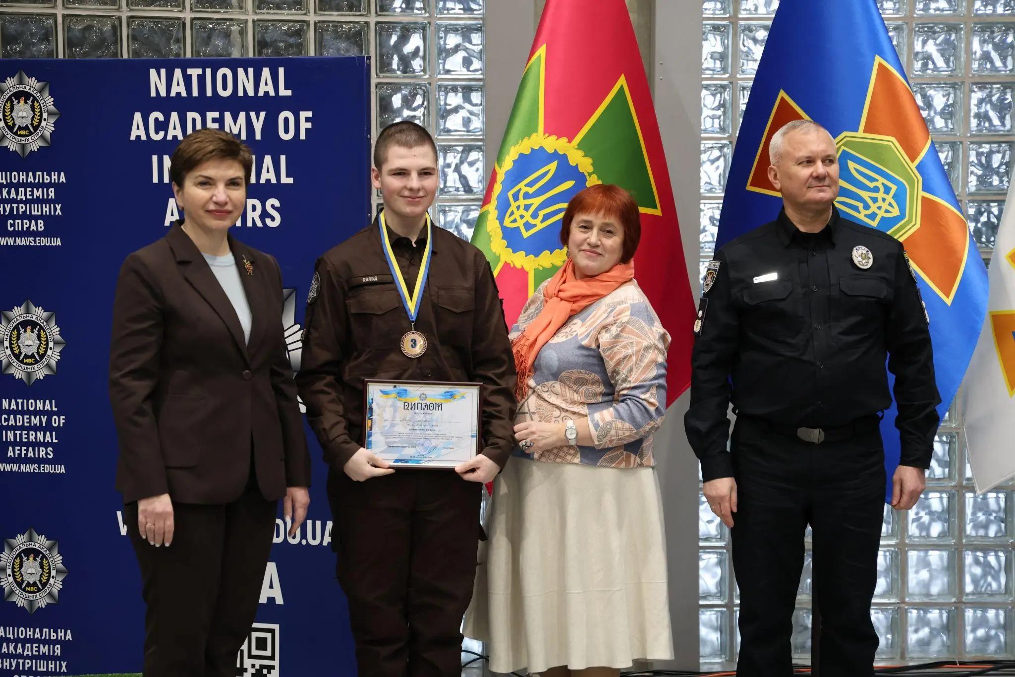 The awards to the boys were presented by the State Secretary of the Ministry of Internal Affairs of Ukraine Inna YASHCHUK, Head of the Department for Monitoring the Activities of MIA Lyceums Larysa VASYANOVYCH, Rector of the National Academy of Internal Affairs Ruslan SERBYN and Chief Arbiter of the Championship Ivan ZAKHARCHUK.