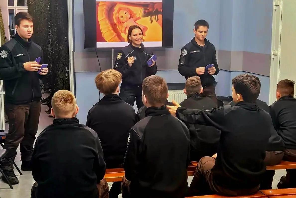 The lesson for pupils of Dnipro Lyceum of security direction and national-patriotic education of the Ministry of Internal Affairs named after O. Hostishchev was conducted by head of the sector of organization of the service of educational safety of the Main Directorate of the National Police in Dnipropetrovsk region police lieutenant colonel Olena TKACHOVA.