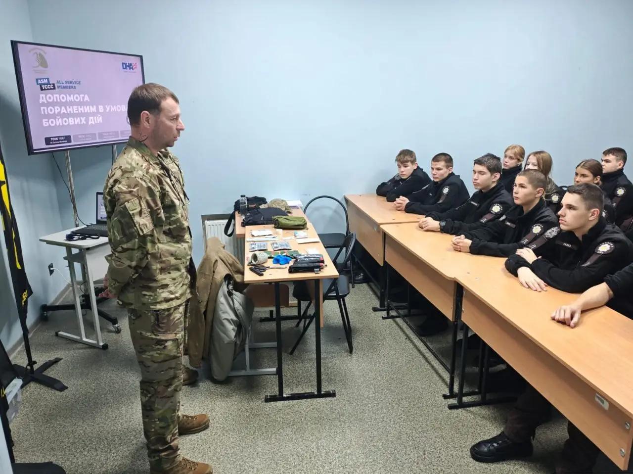 A practical and theoretical course on providing pre-medical assistance in combat conditions has begun at the Dnipro Security and National-Patriotic Education Lyceum named after O. Hostishchev.