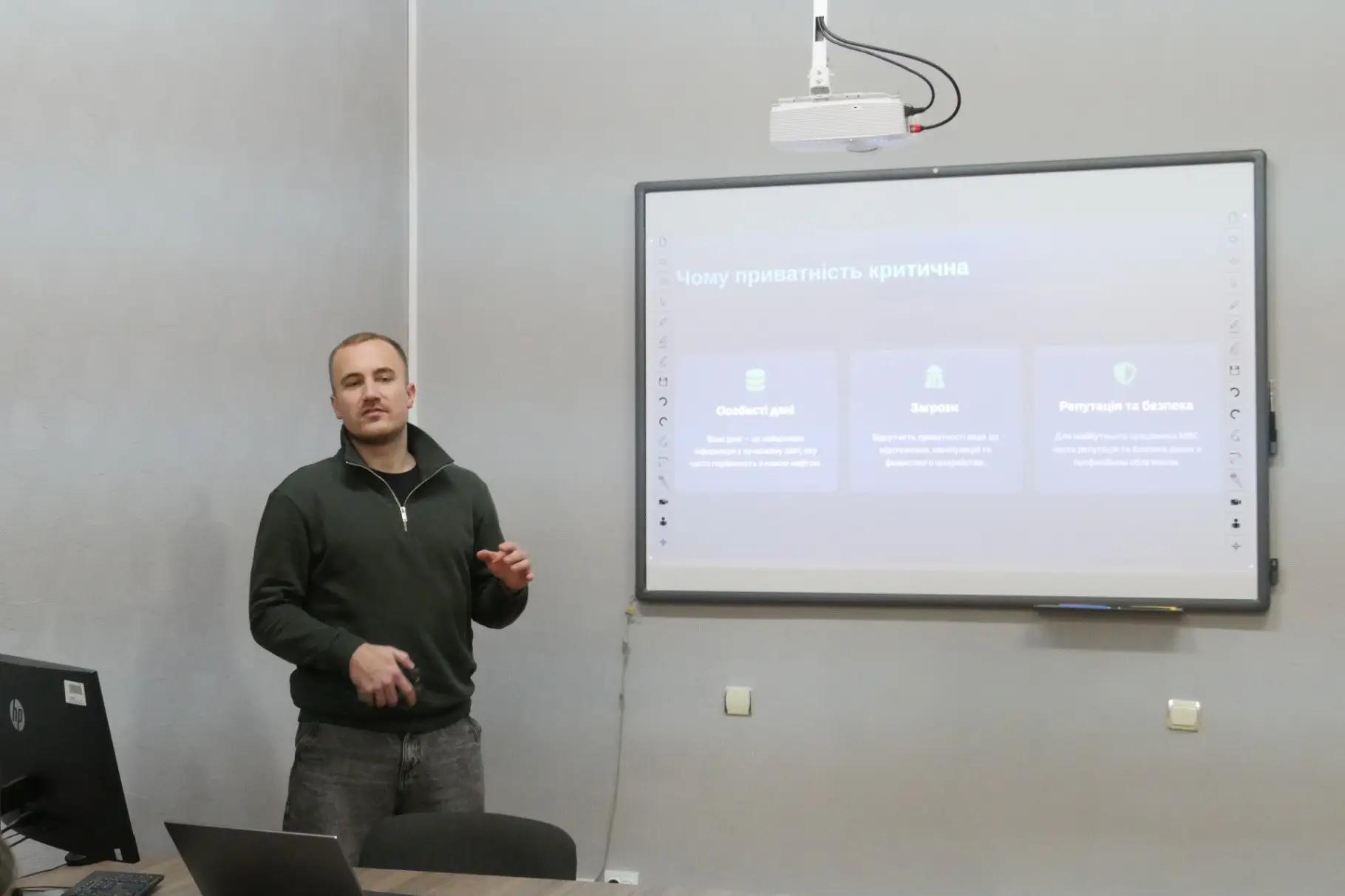 Під час лекції учні дізналися про основні ризики, пов’язані з поширенням персональних даних в інтернеті, правила налаштування приватності в соціальних мережах та відповідальне й безпечне спілкування онлайн.